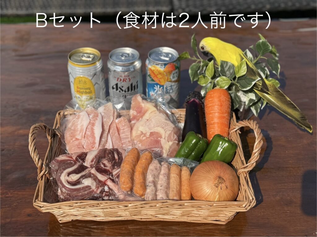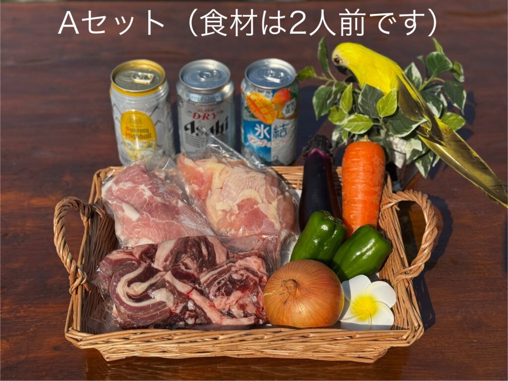 (NG) Aセット×2、Bセット×1 ※1人前はお受けできません - 飲食物の追加持ち込みも可能ですが、火を使うものは一切禁止となります