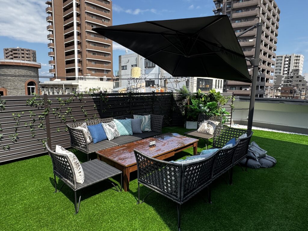 同ビル2Fのワイキキコーヒーと共に展開するBBQテラス。カフェ営業をしていく中でお客様からご要望を頂き、ひそかに計画を進めてきたお店になります。仕入れ最適化やスタッフ数を最小限にすることでリーズナブルな価格帯を実現しました。テラスはヤシなどグリーンを基調とした解放感のある空間で、貸切ならではのプライベートな時間をお過ごし頂けます。飲食物のお持ち込みも可です。